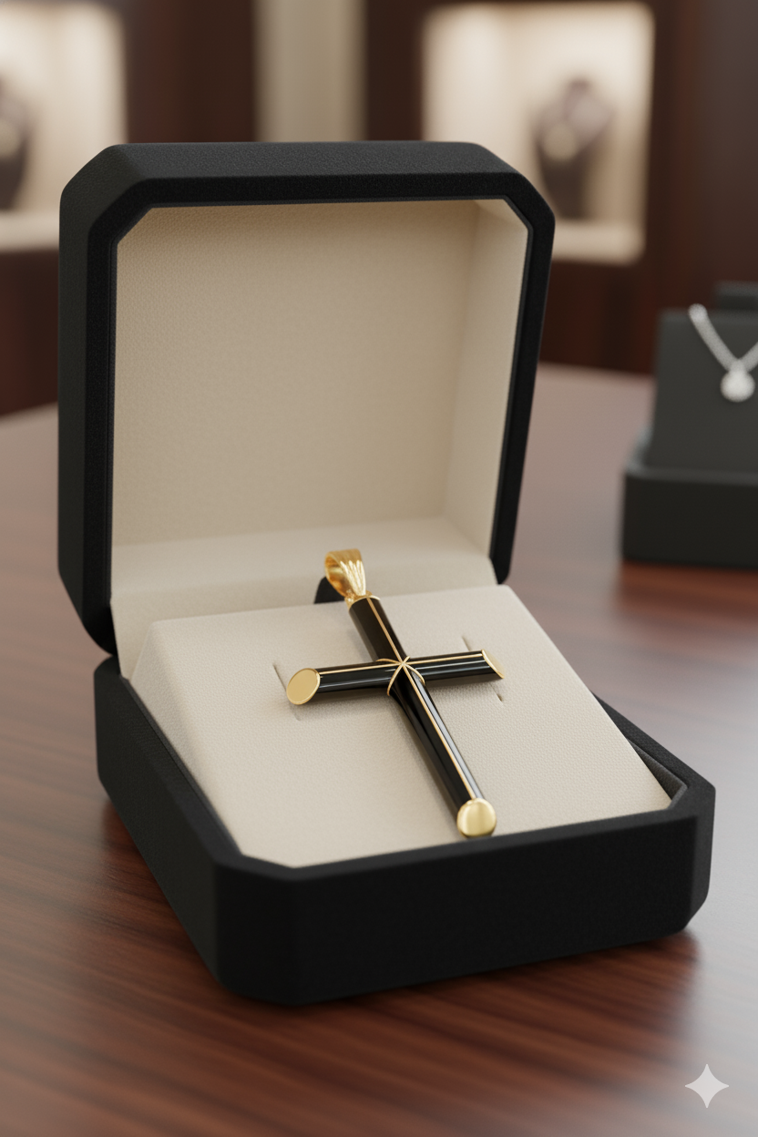 The “Auric Noir” Ebony and Gold Cross Pendant