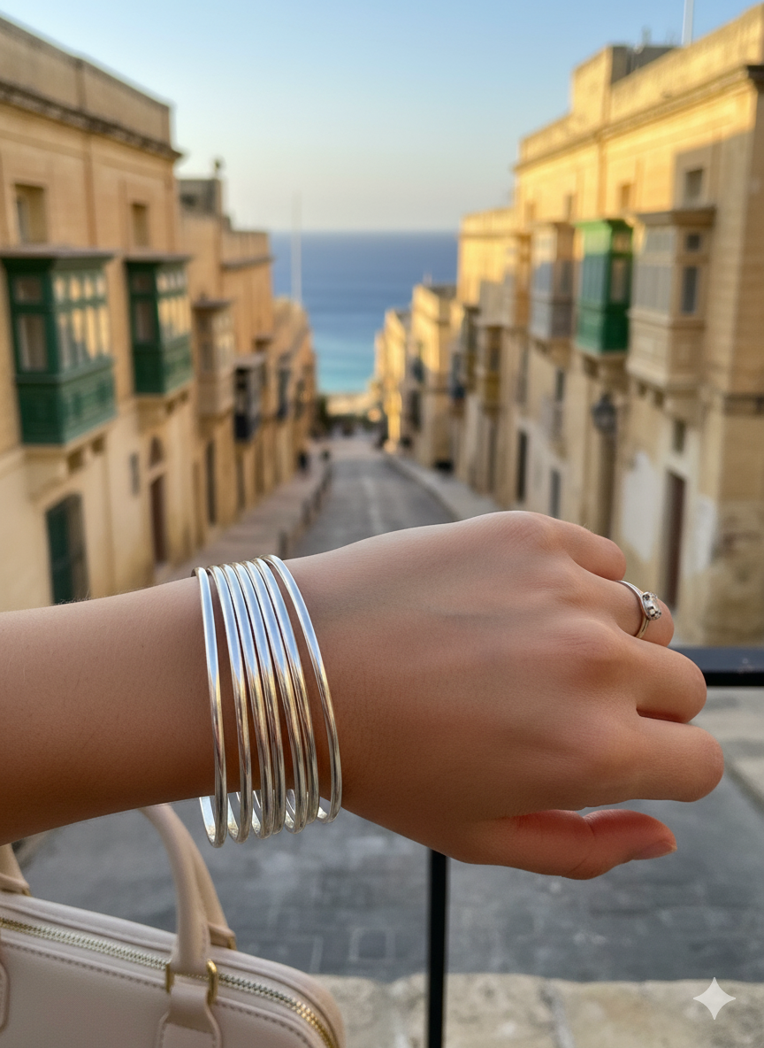 Elegant, minimal, and timeless — the Classic Sterling Silver Bangle embodies effortless sophistication. Each piece is handcrafted from solid sterling silver (925), shaped and polished individually by hand using traditional silversmithing techniques passed down through generations.